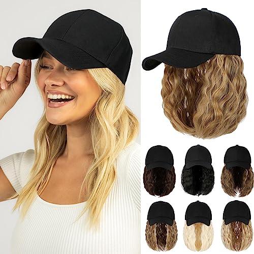 - Specification & MaterialThe hat wig total length is 15";The hairpiece is 9";Weight about 8 oz.Made of 100% high-quality synthetic fibers.Soft touch like natural real hair.The natural wavy hair combined stylish baseball cap change your style and become more confident and charming.Also protects you from sun burn better