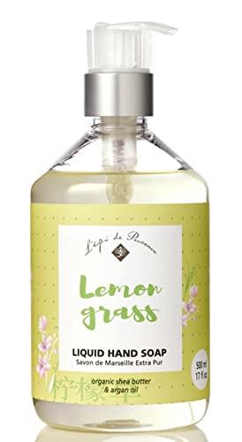 Enjoy all the quality you've come to expect from L'epi de Provence with the convenience of a liquid soap. This Lemongrass scented liquid soap is naturally mild with the moisturizing benefits of organic argan oil and shea butter extract (Savon de Marseille Extra Pur). Clear plastic pump dispenser, 17 fl. oz, (500 ml) Made in France