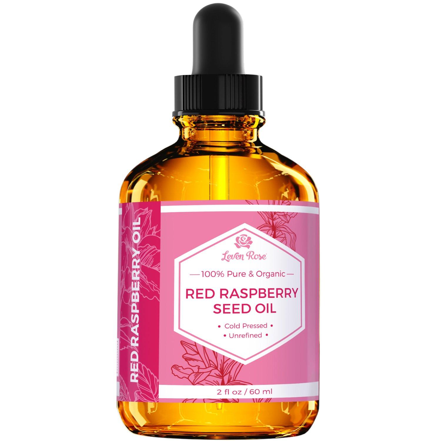 Red Raspberry Seed Oil is packed with rich antioxidants that supports your skins collagen. This oil can be used in conjunction with a sunscreen. Also, this oil is filled with antioxidants like Vitamin A and E, which restore damage to skin, smooth fine lines and wrinkles.Apply daily (can be used multiple times a day) to get the maximum benefits.Use Leven Rose Red Raspberry Seed Oil to:- Restore aging- Moisturize skin- Clear dry skin and reduce red spots- Diminish fine lines and wrinkles- Bring a radiant glow with cell reproductionLeven Rose Red Raspberry Seed Oil is 100% organic - you never have to worry about parabens, fillers, additives, chemicals, GMOs or any other terrible stuff. Not sure it's right for you? Leven Rose stands behind their 100% Money Back Guarantee on ALL our products! Email us (we answer all emails!) - we guarantee our oils for the lifetime of the product.