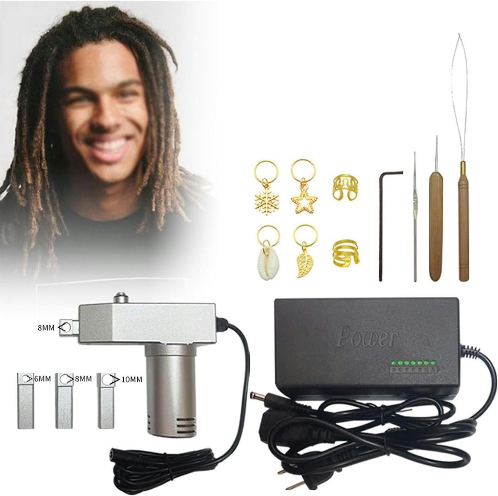 - PACKAGE INCLUDES: The new upgrade dreadlocks machine kit Package includes 1 dreadlocks machine, 3 Replacement Heads, 1 Matching Power, 2 wooden handle hair adapter, Dreadlocks Jewelry, etc. This kit contains all the accessories you need, please check whether the accessories are complete after you receive the package