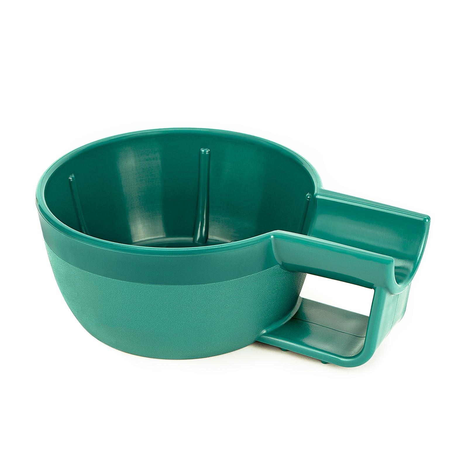 - Green plastic shaving soap bowl ideal for salon, home, personal and professional use.