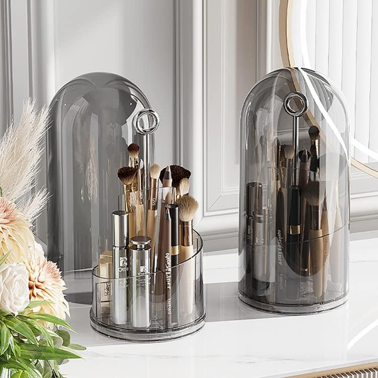 LIVAZIO Makeup Brush Holder With Lid,Rotating Makeup Brush Storage Box With Cover, Pen Holder For Desk,Makeup Eyeliner Lip Liner Holder Organizer For Vanity,Bathroom,Countertop