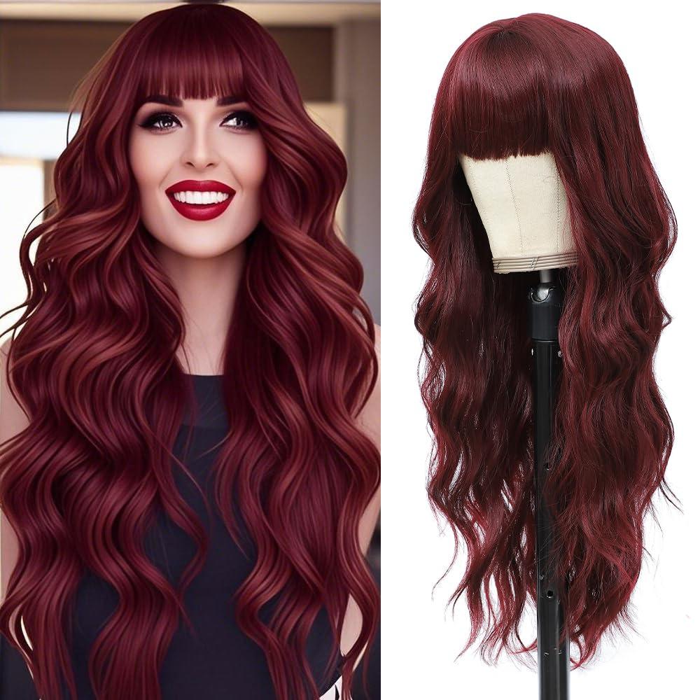 Long Wine Red Wig for Women 26Inch Wavy Curly Red Hair Wigs Synthetic Hair Replacement Wig Heat Resistant Hair Wig for Daily Party Use Halloween Costume Wig