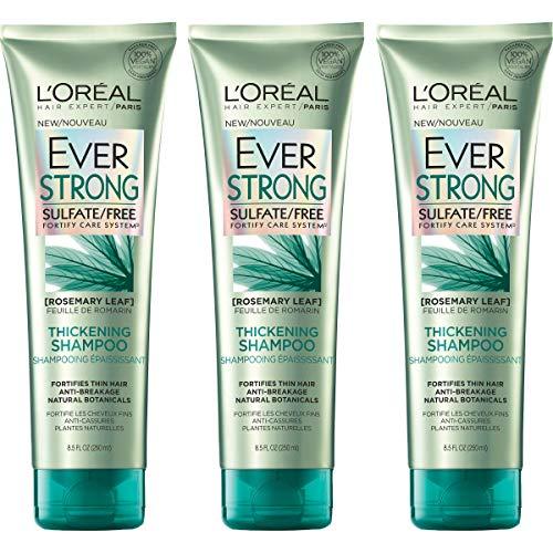 L'Oreal Paris EverStrong Thickening sulfate free shampoo fortifies fragile, fine hair for thicker looking hair after the 1st wash. The system injects strength, reinforcing hair to be 15X stronger. Strengthening Rosemary leaf leaves thin hair looking full and healthy. Our formulas are especially gentle on color treated hair. There are no harsh sulfates, salts or surfactants that can strip, dull and damage hair. Experience a purely sensorial lush, luxurious lather and a fresh aromatic fragrance that conditions. System of shampoo, conditioner, and treatment vs. non-conditioning shampoo