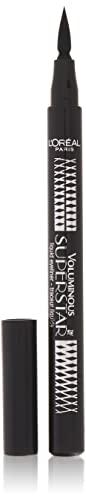For a perfect winged eyeliner look, LOral Paris introduces Voluminous Superstar liquid eyeliner. The flexible felt tip eyeliner traces the curves of your eyelid to achieve a controlled thin to thick line in 1 stroke. The intense black formula glides on smooth with the shiny finish. Iconic eyes that last all day. Flexible felt tip applicator Stays intense black all day, long lasting eyeliner Winged eyeliner Look Does not smudge Start by applying to a clean lid. Hold marker horizontally to use the side of the tip. Apply along the top lashline beginning in the inner corner of the eye working outward. At the end of upper lash line, draw a thin line extending towards end of eyebrow. Warning: Eye cosmetics in a scratched, infected or irritated eye and scratches from cosmetic eye applicators can lead to eye damage, and in extreme cases, even blindness. If your eye is scratched, stop using all eye cosmetics and go to an ophthalmologist immediately. Never apply this product in a moving vehicle.