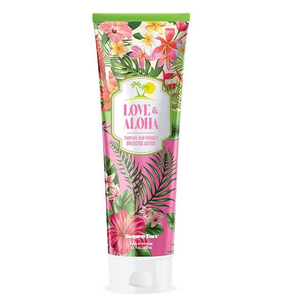 Embrace the Spirit of Aloha in the land of rainbows and sunshine with this tropical adventure. Love & Aloha Bronzing Lotion will transport you to paradise with skin nourishing Mango, Hibiscus, and Plumeria Extracts while exotic bronzers with Kukui Nut Oil enhance your tan for dark radiant results. Our Reef Friendly formula with skin firming Sugar Cane and Coffee Extract helps renew and rejuvenate skin for a more toned and youthful looking appearance that will leave you in an Aloha State of Mind. Aloha Aku, Aloha Mai.