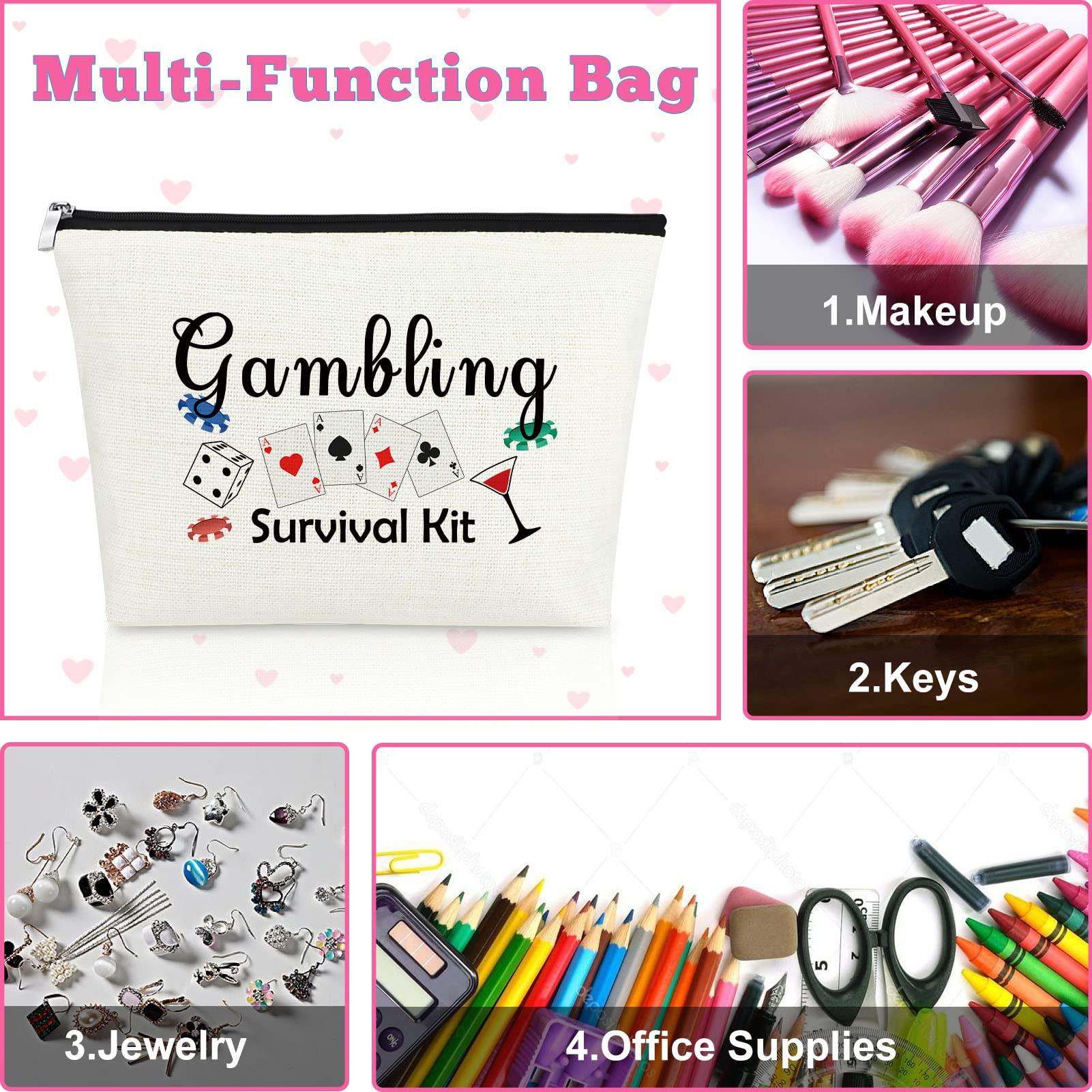 - Poker Money Makeup Bag for Women:This cosmetic bag can be applied as makeup bag, toiletry bag,travel case, pouch, organizer, coin purse, cellphone case and so on; this travel cases are light in weight and portable to carry, good for using when going out, travel, vacation without occupying too much spaces.A special creative small gift and surprise gift ideas for women in any age.