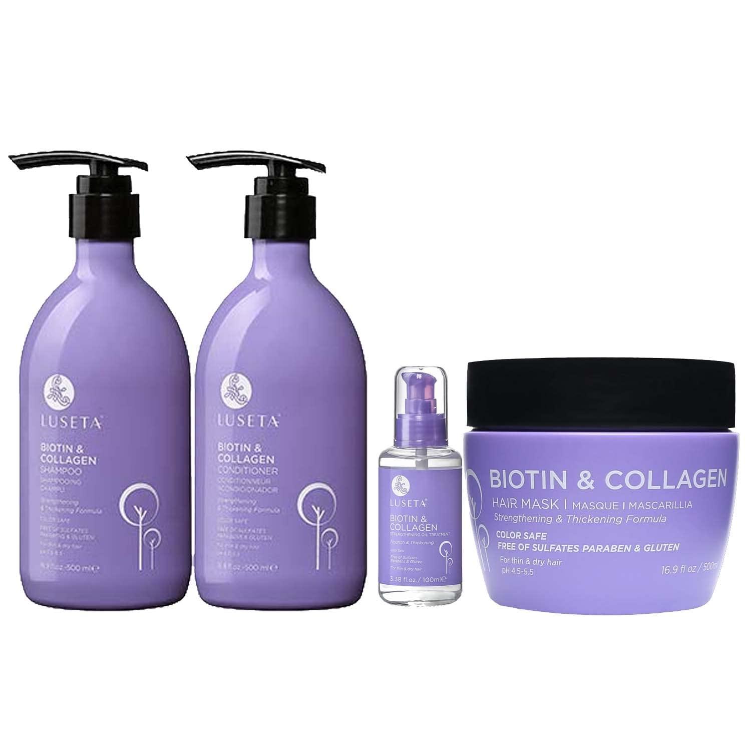 - FOR THINNING HAIR AND HAIR LOSS: Luseta biotin & collagen biotin and conditioner set is proven to reduce hair thinning. It promotes hair strength & thickness with increased volume & reducing breakage