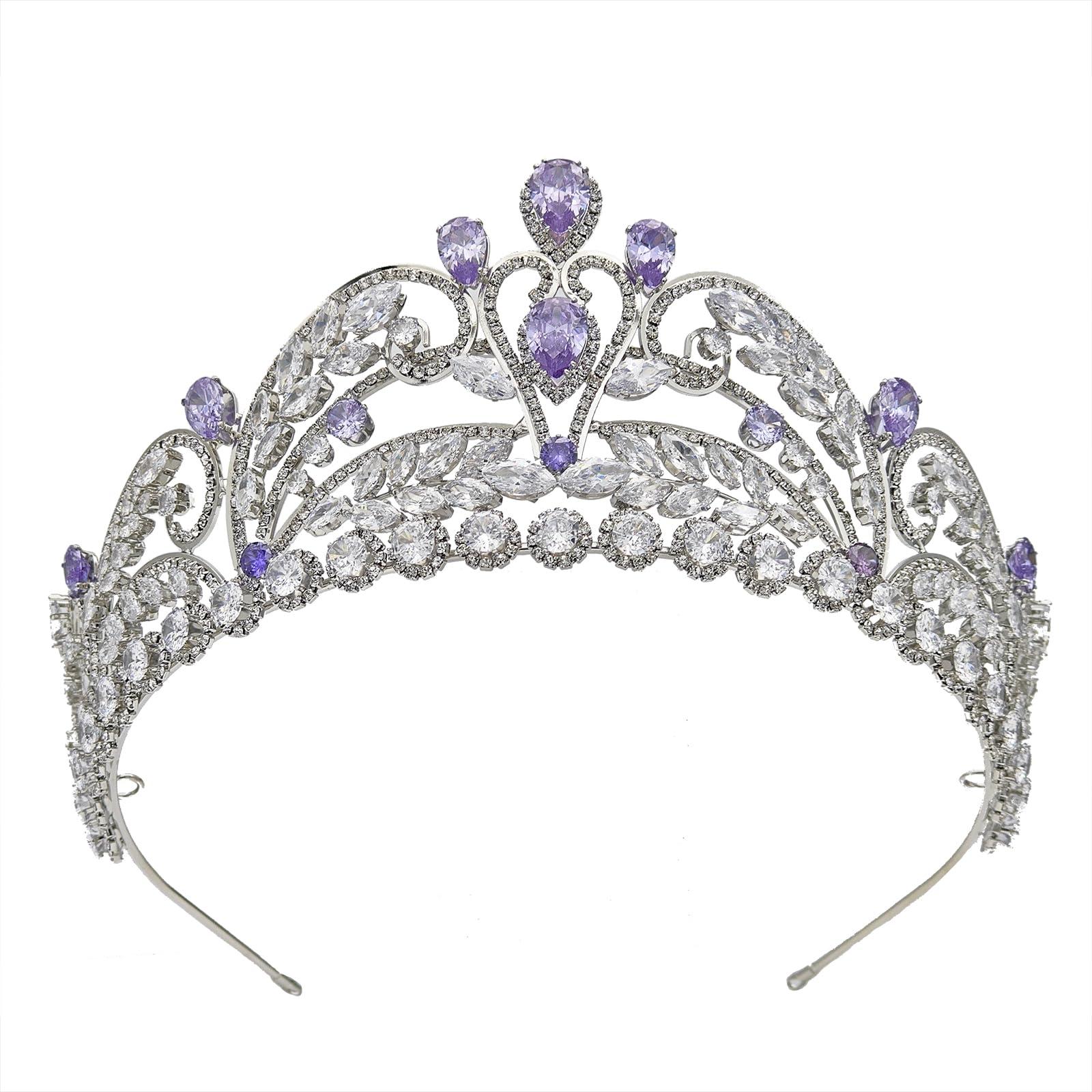 - Material: silver and purple tiara is made of Cubic Zirconias with Micro Inlays and copper plated with real platinum. It's anti-rust, and anti-alleryic, durable for safe wearing in many years.