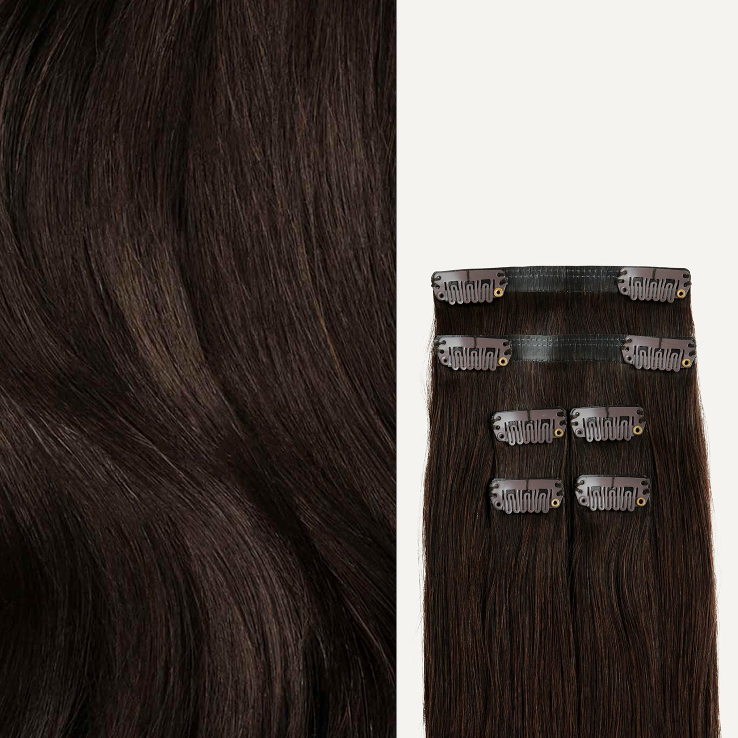 Luxy Hair 16\" Dark Brown Thinning Hair Fill-Ins Clip-In Hair Extensions (80 grams) 100% Remy Human Hair, Coverage for Thinning Hair, 6-Piece Set, Blends Easily