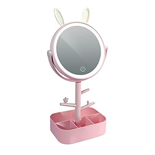 - 2. Function/Appearance: Simple appearance, rabbit shape, rotatable makeup mirror, pillar for hanging necklaces, cosmetic storage box at the bottom.