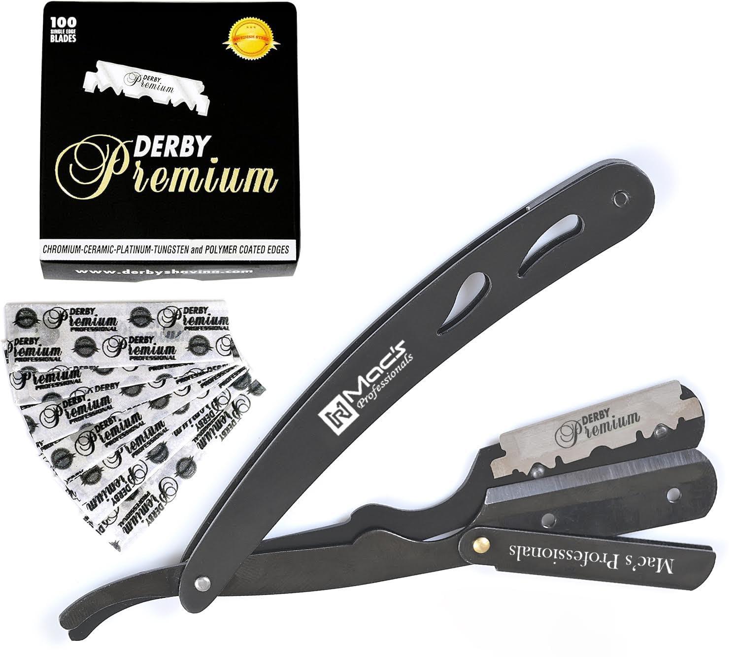 - PREMIUM QUALITY A box of 100 genuine blades by derby which is the best in market. Each blade is individually wax paper wrapped, that will outlast through many shaves. The professional quality Razor can be used both at home and in barbershops