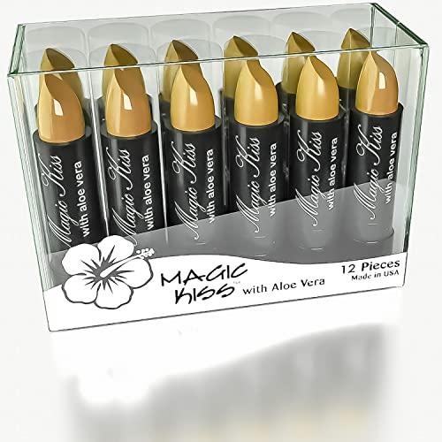 Magic Kiss Magic Kiss Pack of 12 Color Changing Aloe Vera Lipstick set, MADE IN USA (Gold)