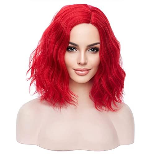 MAGQOO MAGQOO Red Wig Bright Red Wig for Women Red Bob Wig Short Curly Wavy Bright Red Wigs Synthetic Halloween Cosplay Costume Party Wigs (Red, Women Girls)