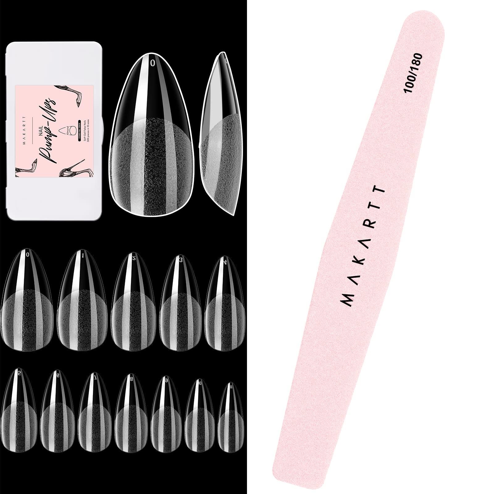 - Soft Gel Nails,Soak off,Easy to Remove - The high quality gel tips are more malleable and leave no trace while folding,cuting, filing or shaping; these false nails in almond shape easily and naturally fit your nails from cuticle area to free edge. Soak off material, easy to remove.Perfect DIY manicure clear nail tips.