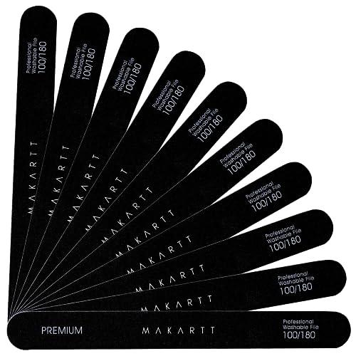 - Different Grits, Function Differently - Makartt acrylic nail file set is ideal to file and rough up the hard fingernails and toe nails in 100 grit, while 180 grit smoothes up your nail edge with refined shape.