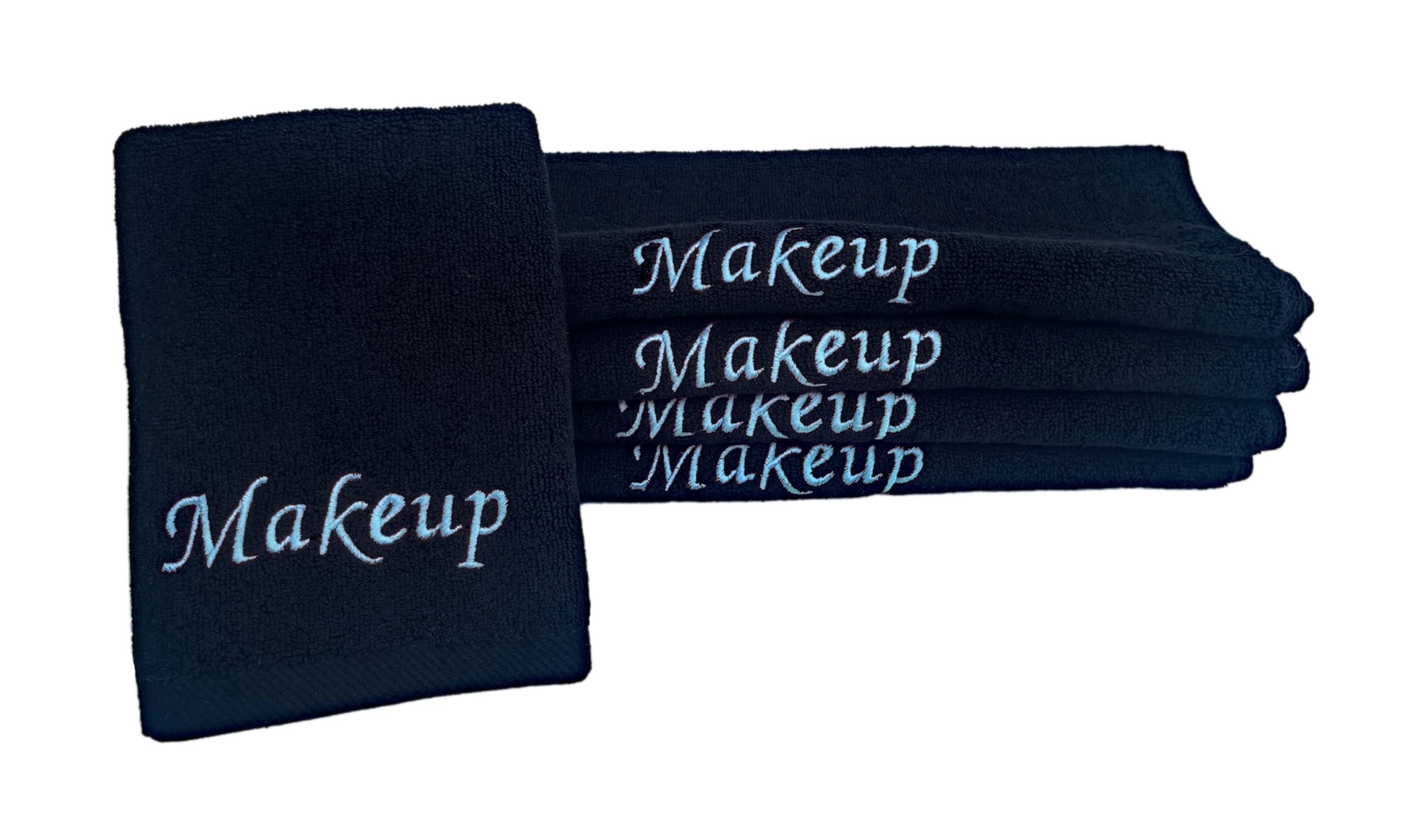 - 100% Cotton makeup towels, 600 GSM. Set of five. Soft and super absorbent cotton washcloths with pink or light blue embroidery.