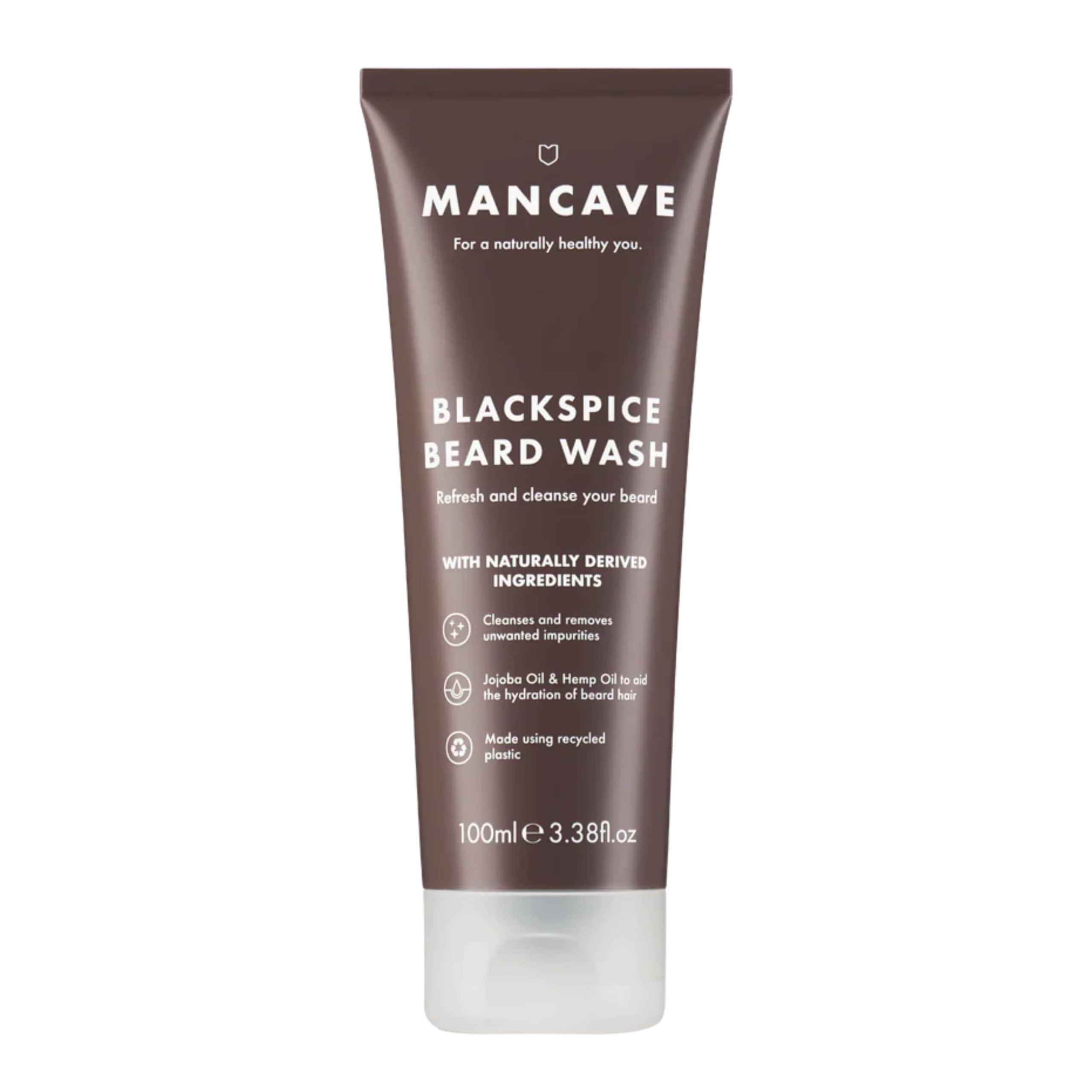 - ManCave BlackSpice Beard Wash uses Tea Tree oil to remove unwanted impurities from your beard and underneath skin