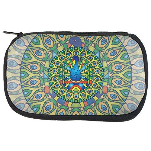 A trippy stained glass peacock design is featured in a mandala pattern. This Animal World design is printed on a cotton/polyester make-up bag. The dye sublimation printing process creates slight imperfections that are unique to each item.