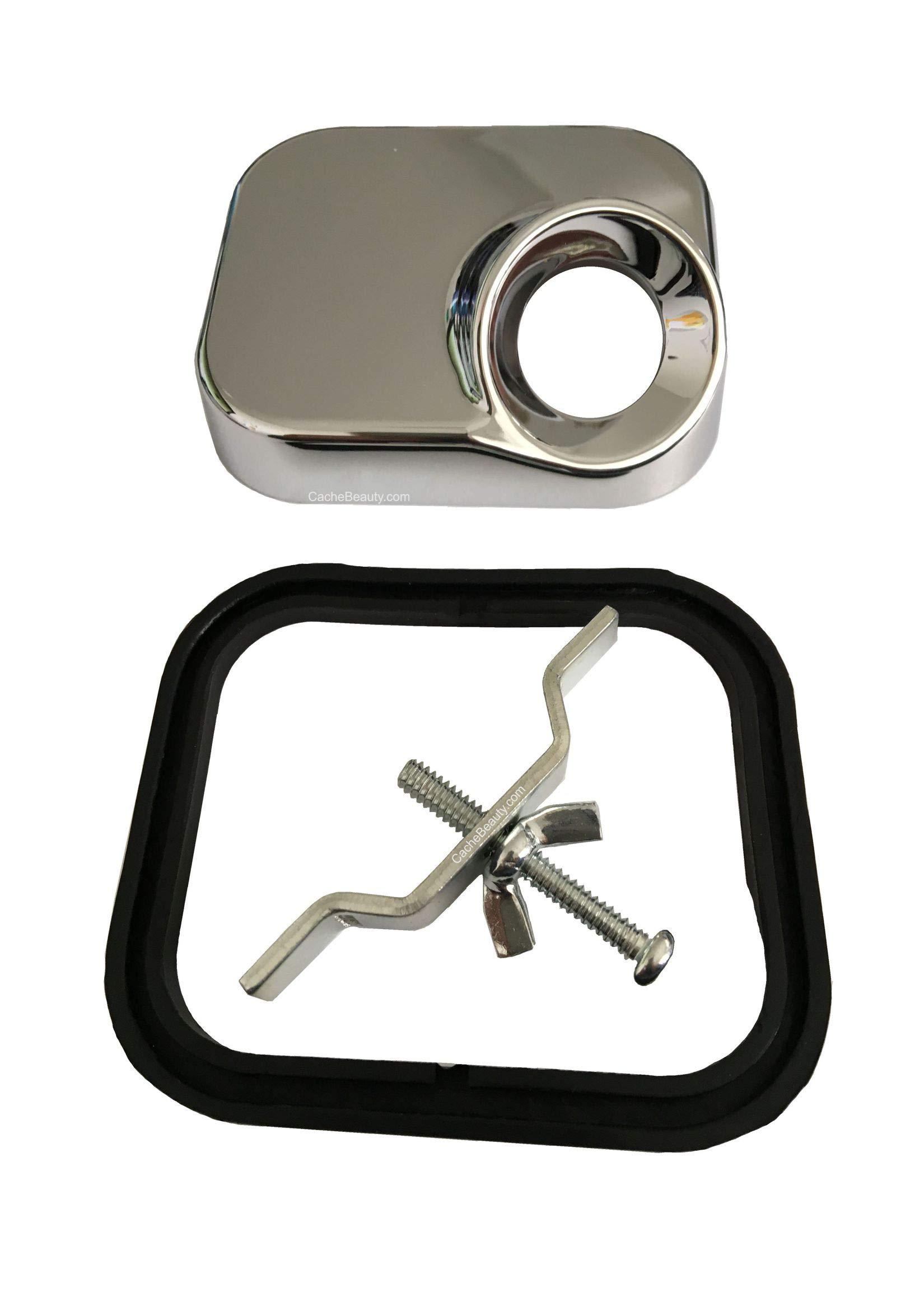 Plain Hose Receiver Plate (without mounting holes for vacuum breaker) / NO Holes on top left / Fastens to shampoo bowl with steel bar with bolt & thumb nut (included) / Also included rubber gasket for receiver (fits between receiver plate and bowl deck) / Dimension of Receiver 3-1/4" x 2-3/4" * Material: CHROME PLASTIC / Color: Chrome Note: This Hose Receiver has a Embedded Metal Nut to fasten the bolt into the receiver plate when mounting it to the shampoo bowl. This makes it much STRONGER than the cheaper receiver plates on the market today, their bolt just screws directly into the plastic receiver plate, which strips out of the receiver plate, thus not holding the receiver plate in place. A loose Hose Receiver Plate will allow it to move and then water will leak underneath the bowl! The embedded Metal Nut allows the Marble Products brand Hose Receiver Plate to stay put when pulling the shampoo hose in and out of the receiver plate !!! Cost a little more but you are "cutting hair" and makeing money instead of wasting time repairing your equipment ! ** Fits: All Marble Products Company (MPC) Shampoo Bowls, Collins Concept and Jeffco Bowls and many other brands