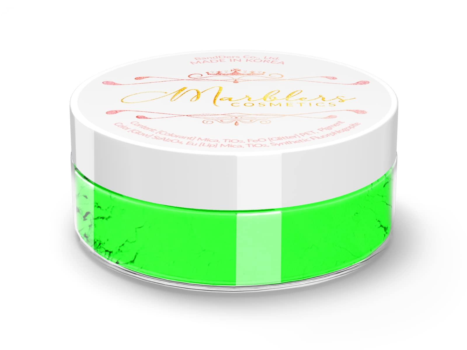 MARBLERS Fluorescent Mica Powder [Neon Green] 0.11oz (3g) | Matte Pigment | Non-Toxic | Vegan | Cruelty-Free | Nail Polish, Nail Art, Soap, Craft | Festival, Rave & Party Makeup