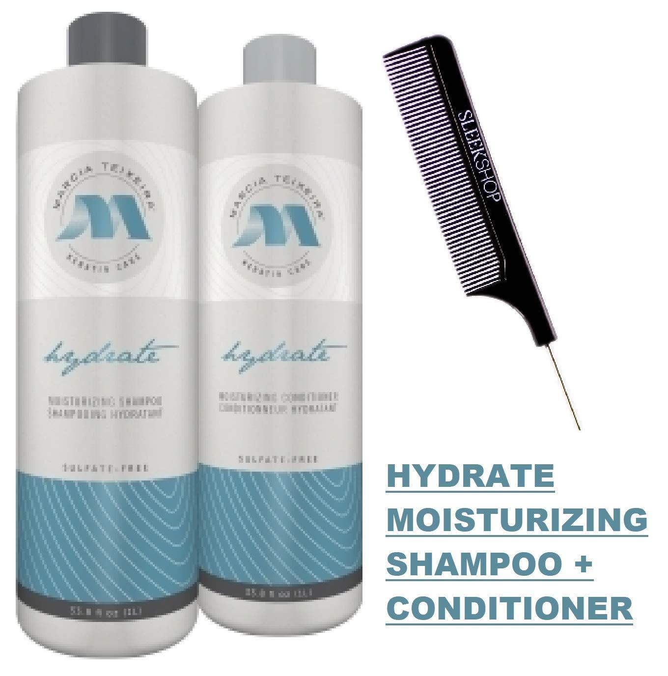 Marcia Teixeira Keratin Care Hydrate MOISTURIZING Shampoo & Conditioner DUO SET, Sulfate-Free for Normal to Dry Hair (w/Sleek Comb) Moisture Hydrating (33 oz + 33 oz - 1000 ml XL LITER DUO KIT)