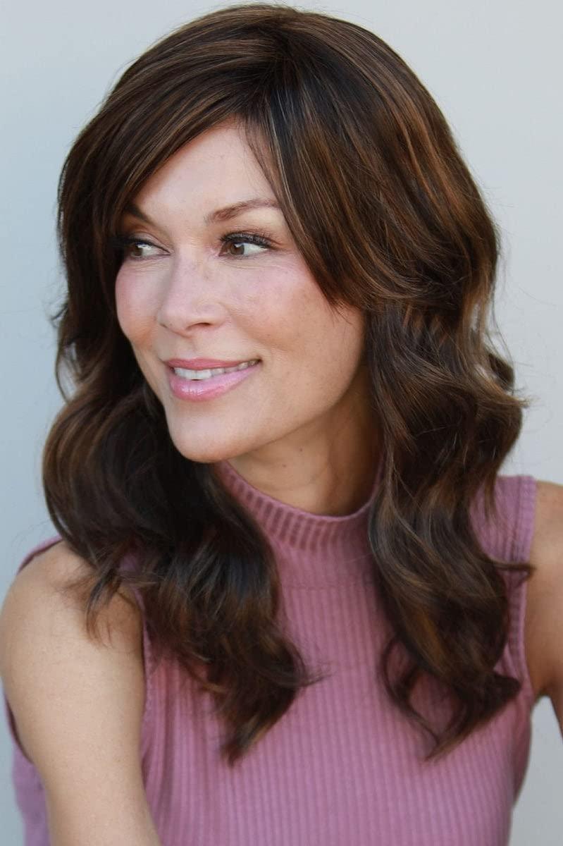 Mariah by Jon Renau has layers long and loose waves accompanied by stylish curtain bangs to complete your perfect look. The open cap design keeps this style feeling lightweight and provides you with great ventilation, which is perfect for those who want to show off long and voluminous hair, even in the summer months. Synthetic Hair Ready-to-wear, pre-styled and designed to look and feel like natural hair. Get runway-ready with Mariah, our long-layered wig with soft waves and side-swept bangs. With a lightweight, open cap construction, this style ensures all-day comfort and volume. Mariah Wig Color FS27 Strawberry Syrup - Jon Renau Wigs 12.5" Long Loose Wavy Layers Synthetic Women's Open Cap Design Curtain Style Bangs Bundle MaxWigs Hairloss Booklet