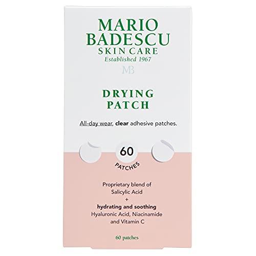 "Effortless treatment for all blemishes. Simply peel and stick, and our wonderful drying patch will help you flatten and dry up surface blemishes effectively and quickly. With our unique blend of active ingredients, you can say goodbye to all blemishes with a special non-drying, exfoliating and hydrating formula: - Salicylic Acid: BHA exfoliant that helps reduce blemishes - Niacinamide: helps balance and regulate oily skin - Vitamin C (BV-OSC): Promotes Collagen - Sodium Hyaluronate: boosts moisture and reduces inflammation - Melaleuca Alternifolia (Tea Tree) Extract: Disinfecting and anti-inflammatory agent - Phytosphingosine: WHY IS DRYING PATCH DIFFERENT? The main difference between the Mario Badescu's Drying Patch and hydrocolloid patches is how both work to help reduce the appearance of whiteheads. Hydrocolloid patches depend on the material (hydrocolloid) to create the ideal environment to allow whiteheads to heal, while drawing out moisture. This is why you see patches turn white over time because it is drawing out moisture and oils from the blemish. Mario Badescu Drying Patches, however, are infused with active ingredients that help reduce whiteheads over time. Drying Patches use a combination of blemish reducing ingredients, such as salicylic acid, tea tree, vitamin C, while also using hydrating ingredients, like hyaluronic acid, to keep skin moisture. #MBSKINTIP: Pair with the iconic Mario Badescu Drying Lotion as the nighttime counterpart. Dab on Drying Lotion before bed and apply Drying Patch after cleansing and toning in the morning."