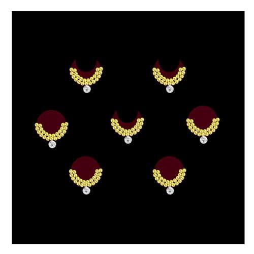 - Apply Instruction : To apply a bindi carefully remove it from the plastic and place on your forehead in between the eyebrows. Hold the bindi down for a few seconds or until you feel that your bindi holds firmly in place.The bindi can be reused and worn multiple times or until it loses its stickiness. You also can use eyelash glue to enhance the stickiness for avoiding fall off.