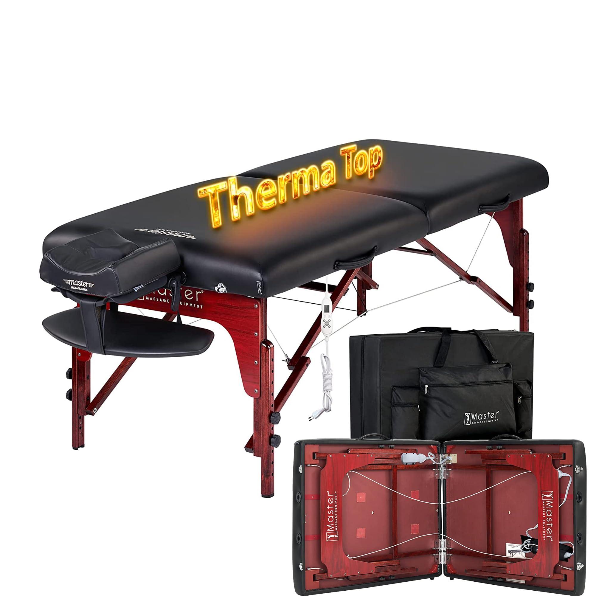 - FULL OF FEATURES - Experience warmth and comfort with the patented ThermaTopTM warming system! This heated massage table features 3" thick, Multi-Layered Small Cell foam cushioning and is topped with a layer of memory foam for superior client comfort, plus it comes equipped with Reiki end panels and Shiatsu cable release for all your needs.