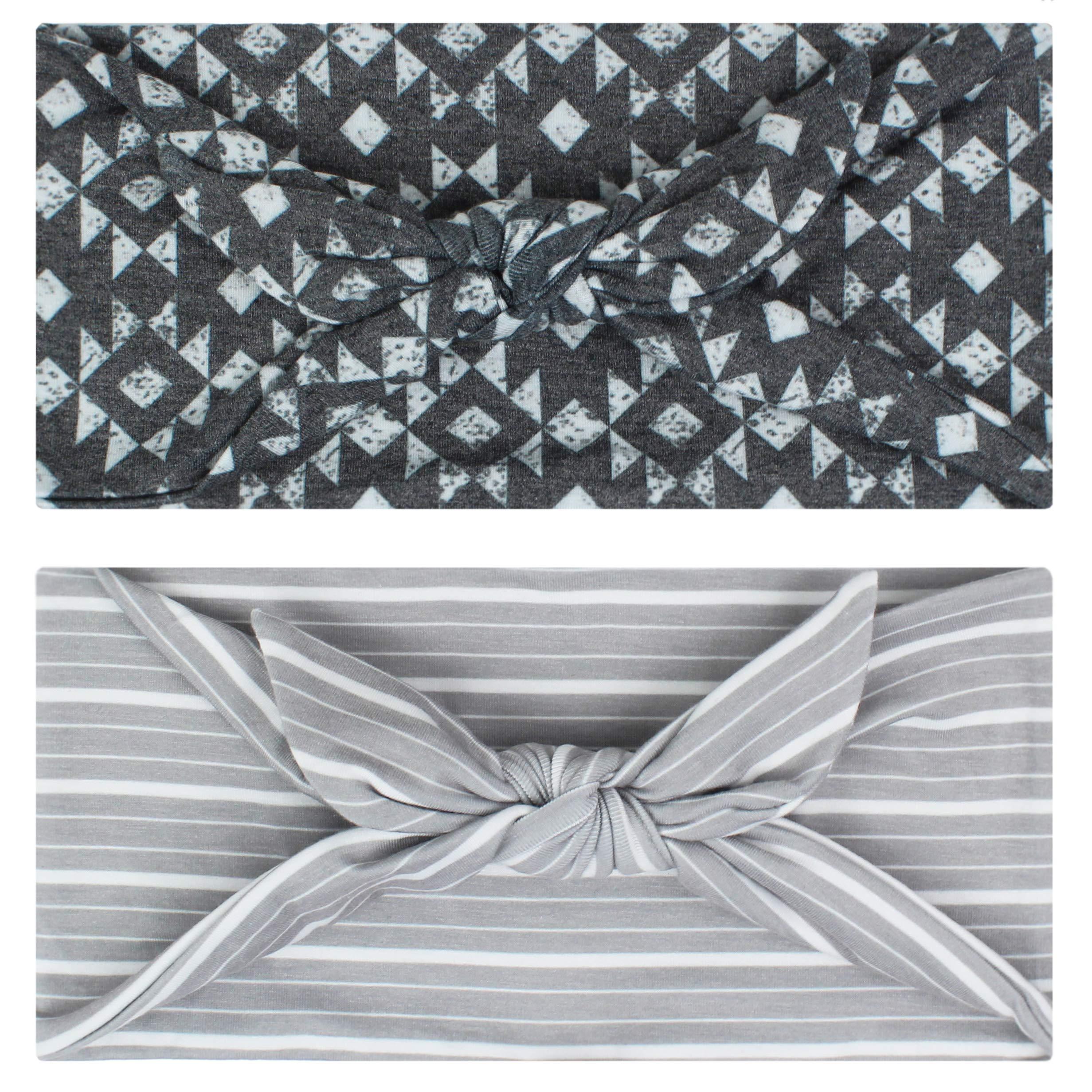 - CUTE DESIGNS: Our headbands come in a variety of cute, modern designs that both girls and women love. Whether you're looking for an accessory to match your favorite sweats or a headband to spruce up your ponytail, we're sure to have a look you'll love. This Hustle set features 2 bow headbands in a grey and white stripe and black and white aztec design.