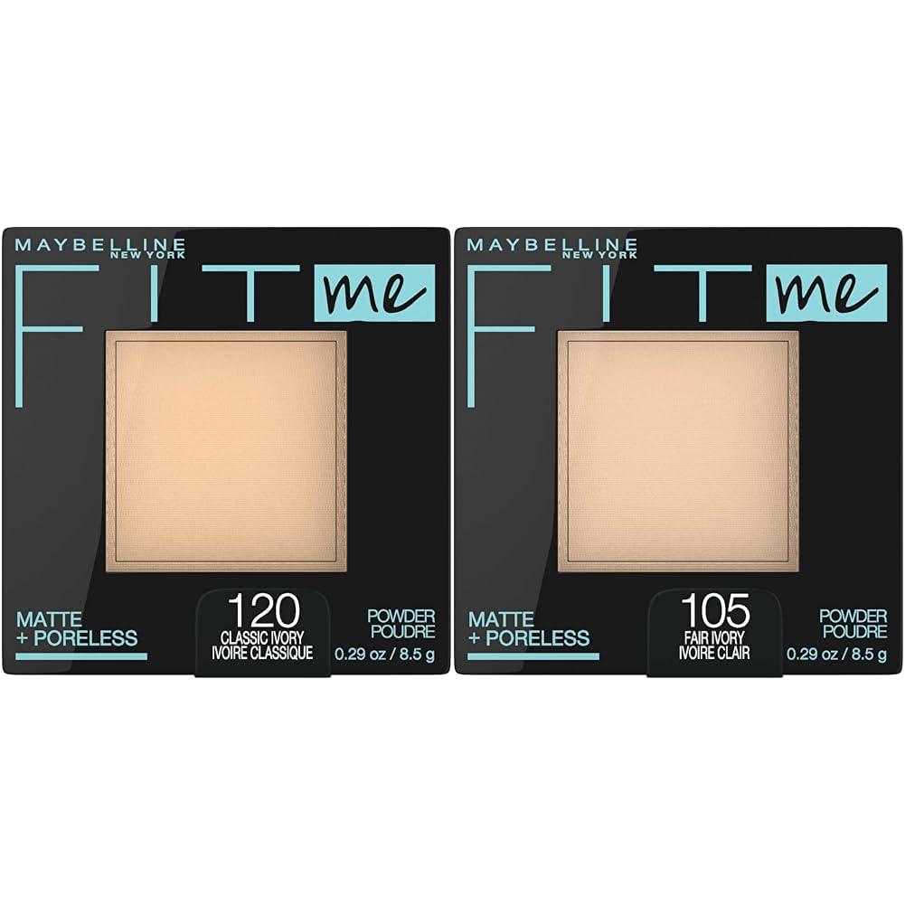 This face powder bundle from Maybelline includes two complementary shades of their popular Fit Me Matte + Poreless Pressed Powder. One is Classic Ivory, ideal for fair skin tones, while the other is Fair Ivory, suited for very fair complexions. Both long-lasting pressed powders leave a natural, poreless finish with shine control that lasts all day. The matte formula is ideal for normal to oily skin types. It contains perlite mineral technology that absorbs oil to mattify skin, while blurring micro-powders minimize the appearance of pores. These face powders provide lightweight coverage in universally flattering shades for a range of skin tones. Use them individually as a shine-controlling setting powder or layer for additional coverage. The non-comedogenic, allergy-tested formula allows for buildable coverage without caking or feeling heavy. Achieve a flawless, natural-looking matte finish that stays put all day with these complementary setting powders from Maybelline's Fit Me collection designed to produce poreless-looking skin.