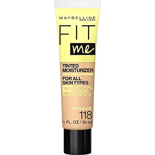 Maybelline fit Me tinted moisturizer provides natural coverage and shine-free 12H hydration. This formula enhances skin without hiding it, blurs pores and conceals imperfections. It is your natural look and feel all in one easy fit created from 76 natural origin ingredients with Aloe. This natural tinted moisturizer is available in 14 hydrating shades. We consider an ingredient to be naturally derived if it's unchanged from its natural state or has undergone processing yet still retains greater than 50 of its molecular structure from the original natural source. The remaining ingredients constitute 24 of the formula to ensure its sensoriality and color cosmetic performance. Apply Maybelline Tinted Moisturizer with fingers or a foundation brush. Do NOT use a beauty blender or makeup sponge. Apply on clean, dry skin or over your SPF sunscreen after letting it dry.