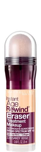 - Maybelline Instant Age Rewind Eraser: Erase the look of dark circles, correct the appearance of redness and brighten the look of dull skin with a multi-use SPF boosted anti-aging foundation; Exclusive applicator covers, smooths and fills