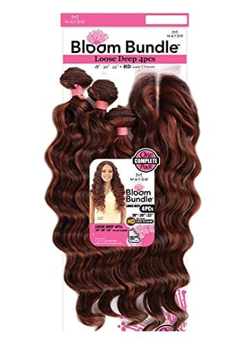 Mayde Beauty Bloom Bundle LOOSE DEEP 4PCS 18" 20" 22" with HD Lace Closure