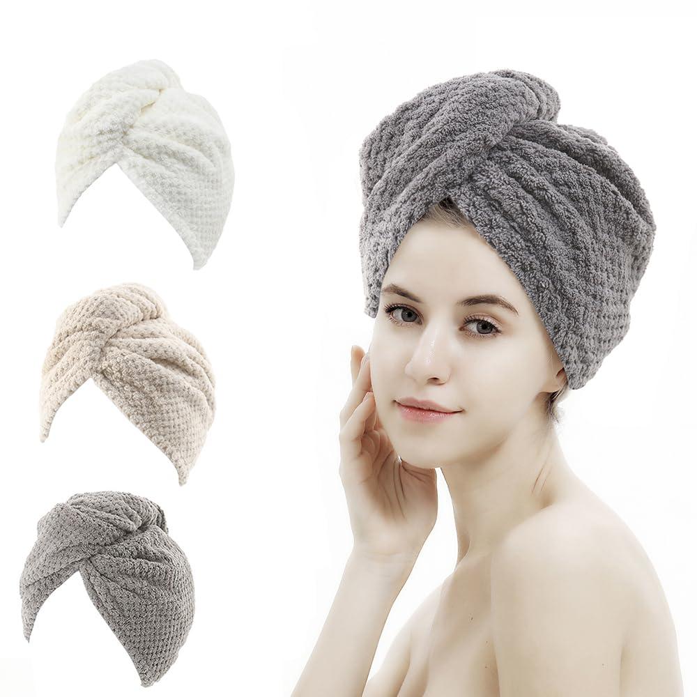 M-bestl 3 Pack Microfiber Hair Towel,Hair Towel Wrap,Hair Drying Towel,Super Absorbent and Lightweight Hair Turban,Hair Towel for Women to Dry Hair Faster(Gray&Khaki&Beige)