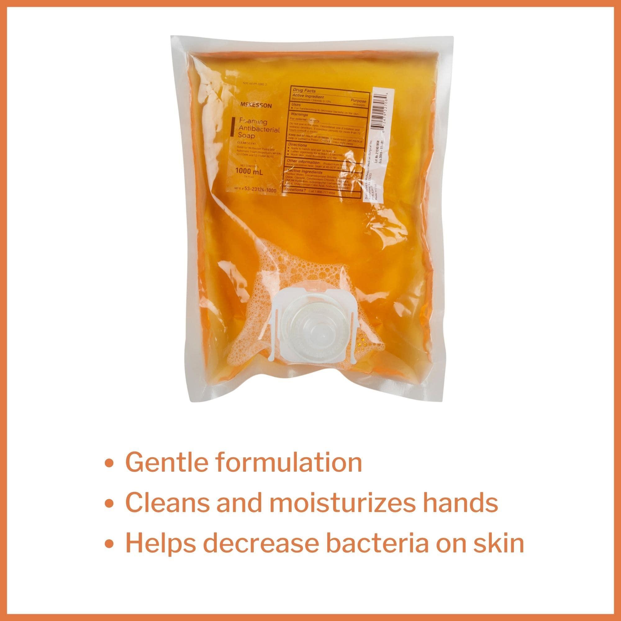 - Orange liquid hand soap comes in a 1000 mL refill bag for McKesson Pump and Automatic Foam Dispensers #53-FOAM and #53-FOAM-AUTO