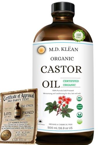 - EXTRA VIRGIN FOR EXCELLENCE: Derived from the first COLD pressing of castor beans, THIS extra virgin oil is a testament to the highest quality and effectiveness. Certified Organic Goodness: USDA certified organic, M.D KLEAN's castor oil is free from synthetic additives, pesticides, and GMOs, delivering a pure and natural solution.