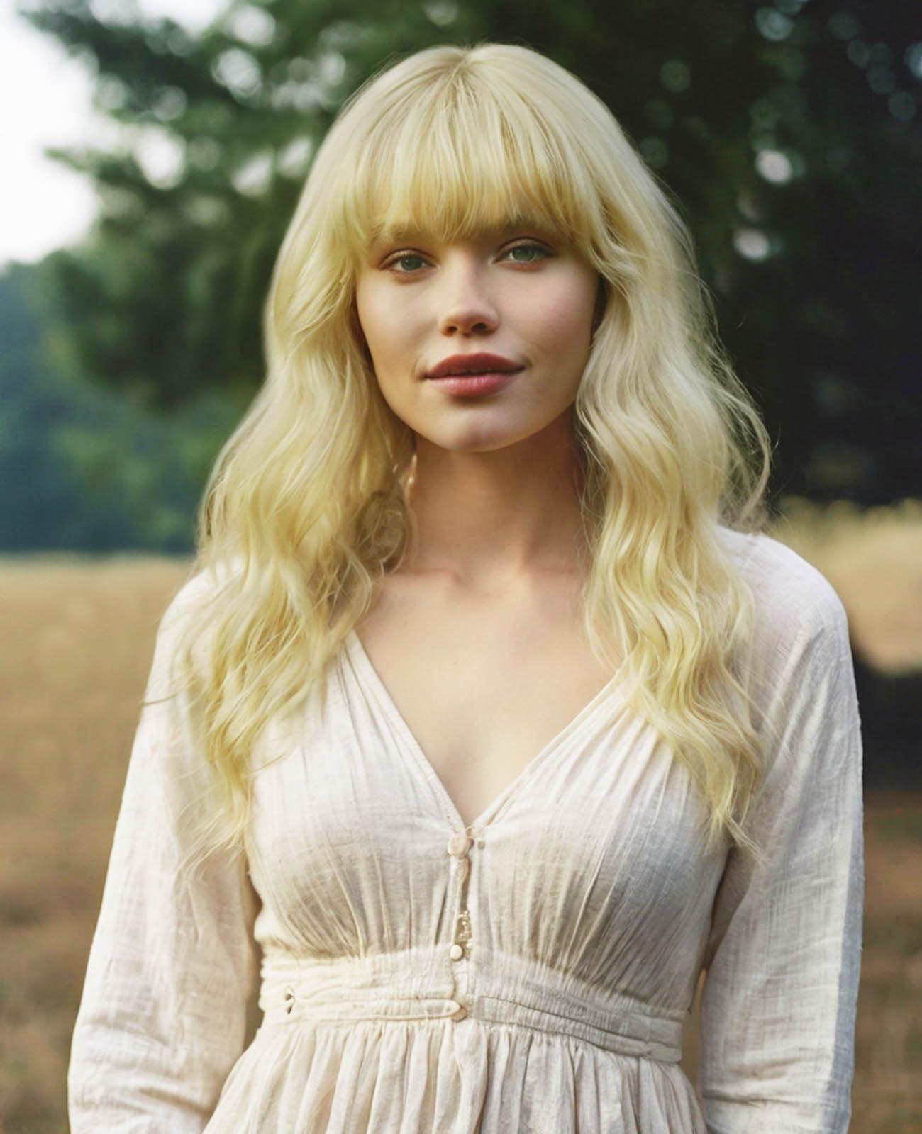 - Blonde Wig with Bangs Versatile Style: Long curly blonde wig with bangs is a popular choice for women, shaping faces and suitable for daily wear to special events; Genuine bangs frame foreheads, customizable for occasions and desired lengths