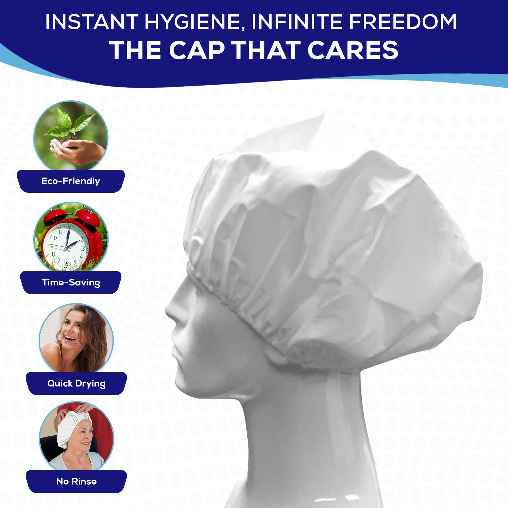 - WHEN & HOW TO USE: Just place it over the head, massage hair through shampoo shower cap until wet for 5-10 minutes, remove cap and towel dry. Rinse Free caps are widely used by medical staff, care workers, mobile hairdressers and great when travelling.