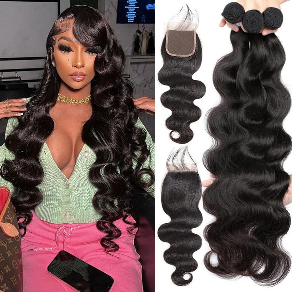 - Hair Quality: 10A Grade Body Wave Bundles Human Hair with Closure; Double Machine Weft, Hand Tied, Full and Smooth with Healthy Hair Ends; Shiny&Bouncy, Soft &Thick, Tangle Free, Shedding Free, Unprocessed Natural Color