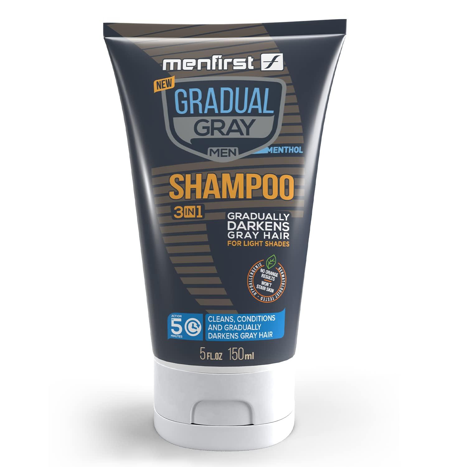 - NON-STAINING GRAY HAIR SHAMPOO: Revitalize your gray and white strands effortlessly with MENFIRST Gradual Gray 3-In-1 Hair Darkening Shampoo! Our 3-in-1 shampoo for gray hair not only cleanses and conditions but also gradually darkens gray hair, ensuring a naturally refreshed look.