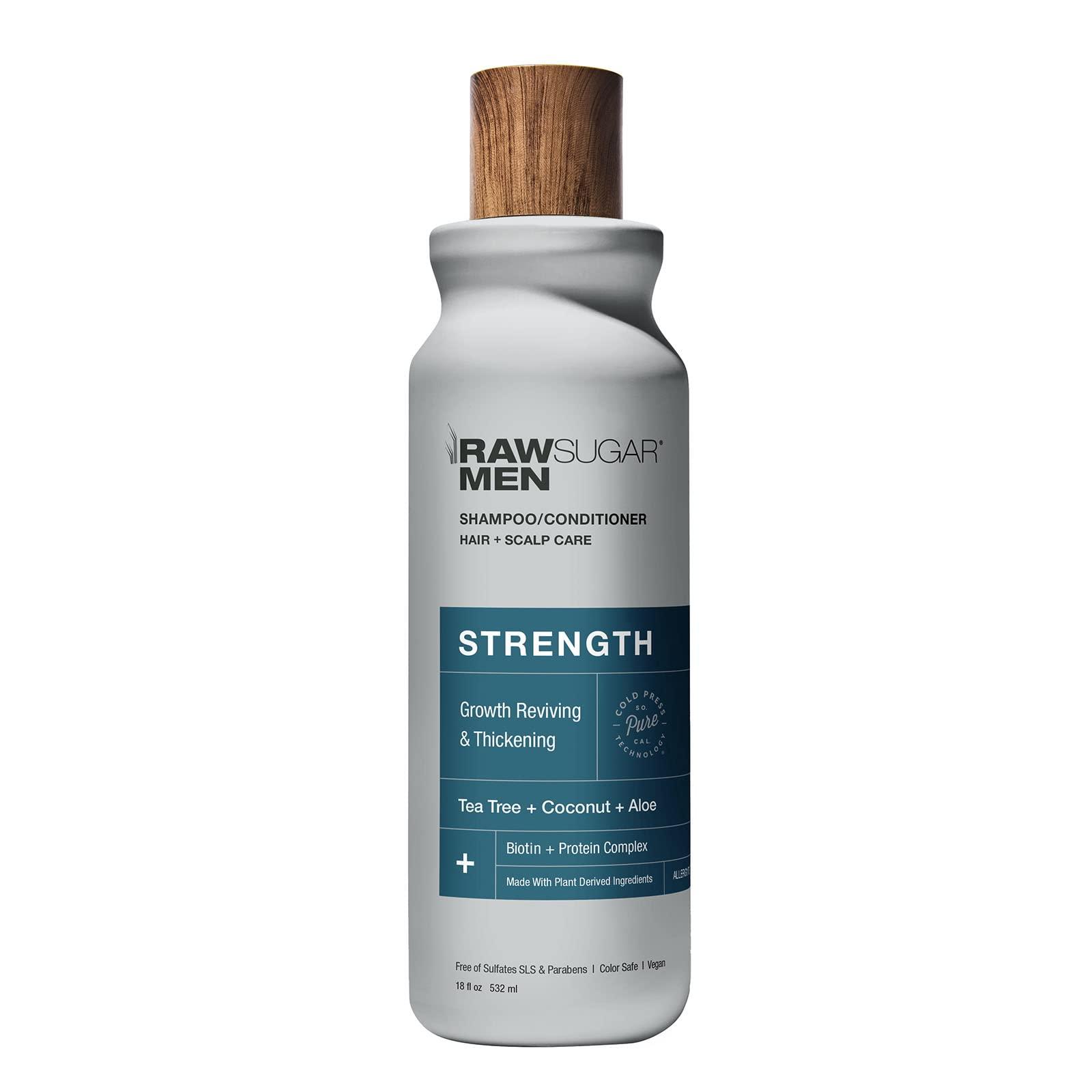 Power up and strengthen! Promote thicker looking hair with this reviving blend, made with Cold-Pressed oils. Enriched with conditioning Tea Tree + Coconut + Aloe, this 2-in-1 shampoo and conditioner combo is a potent formula. Just lather, rinse, and enjoy effortless volume.