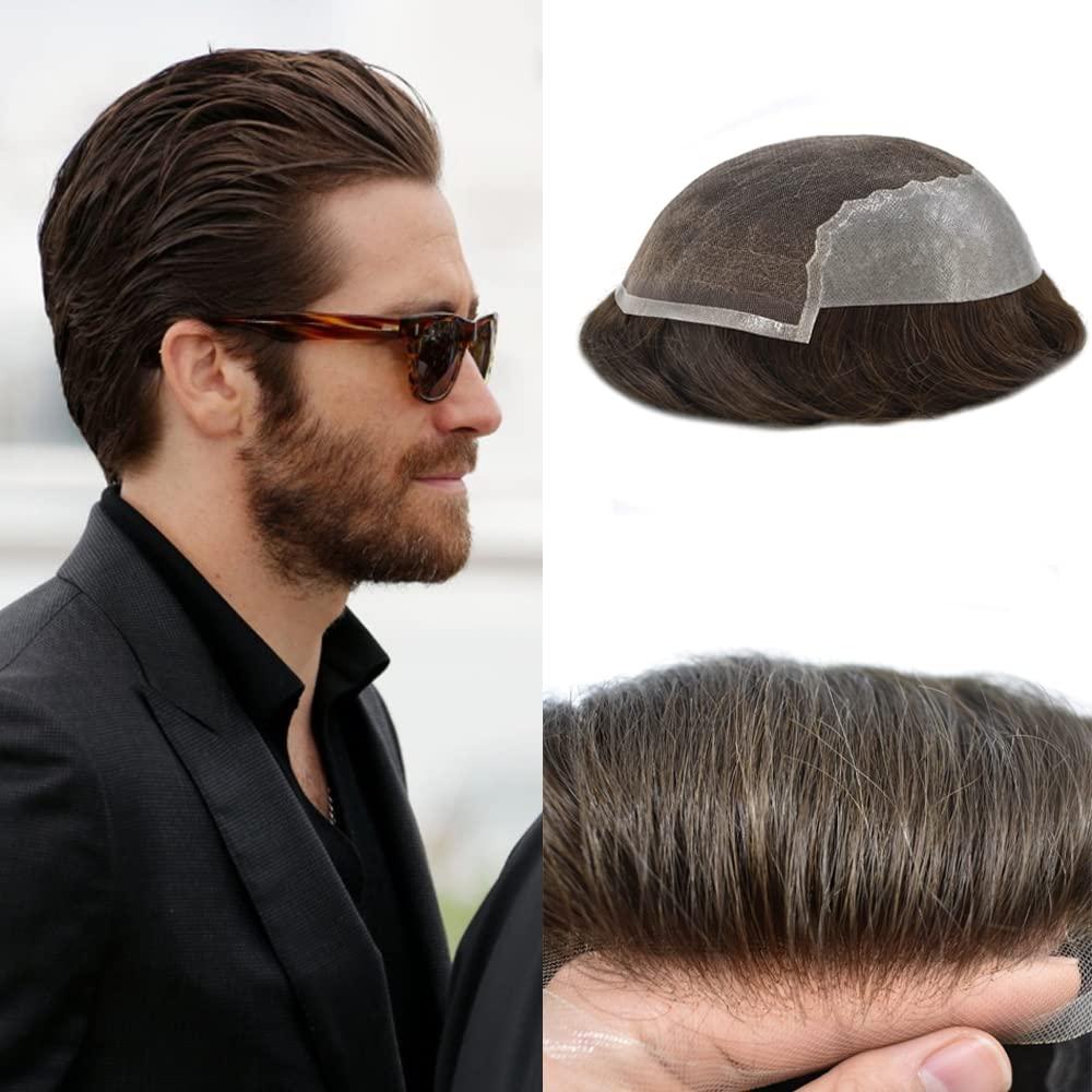 - French lace hair replacement system for men real 100% high quality human hair,The hair is soft, smooth, shiny and elastic, not easy to fall off or break.Toupee for men hair piece soft enough, durable and breathable,Easy to trim and style.don't worry about falling, no shedding ,don't fall of.Easy to wear with tapes or glue.Hair piece for men looks more natural.