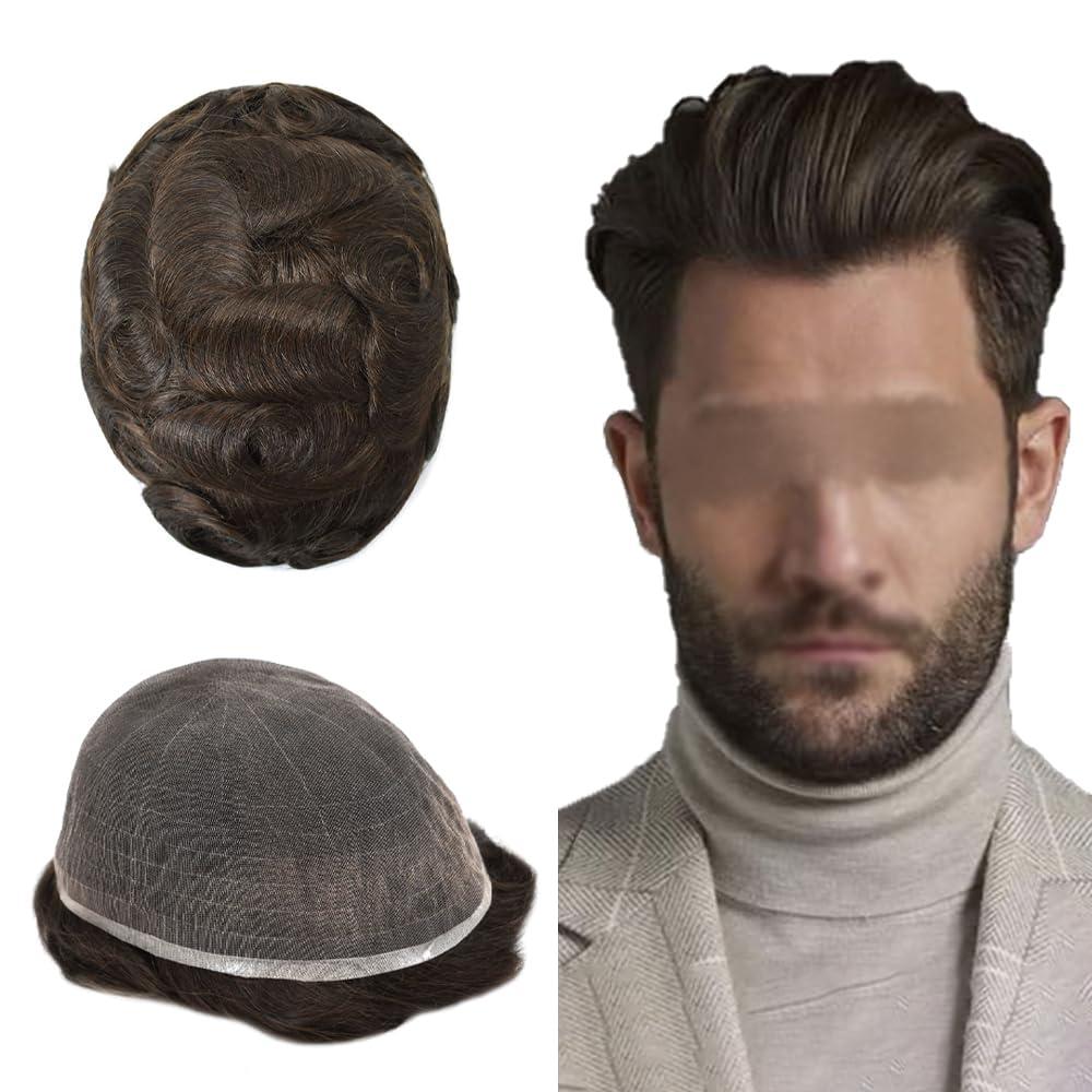 Mens Toupee Hair Replacement System for Men All French Lace Mens Hairpiece Soft Lace and Breathable Full Lace Hair Unit Human Hair Toupee For Men 8\"X10\"#3 Dark Brown-120% Density
