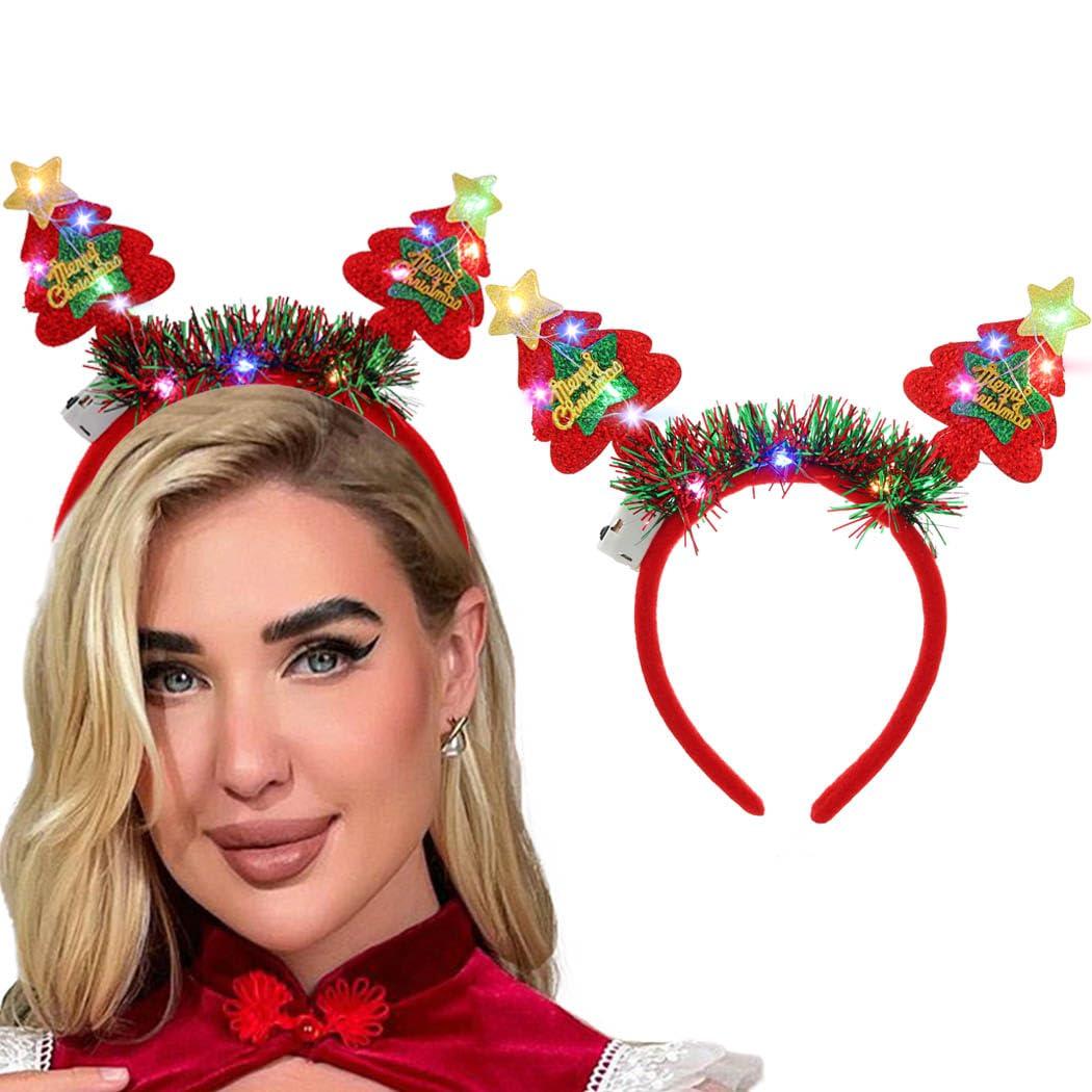 - Xmas Tree headband are designed by tree,star and light making the hair band,lights around the hairband, completely different from other Christmas hairbands, make you shine at the party.