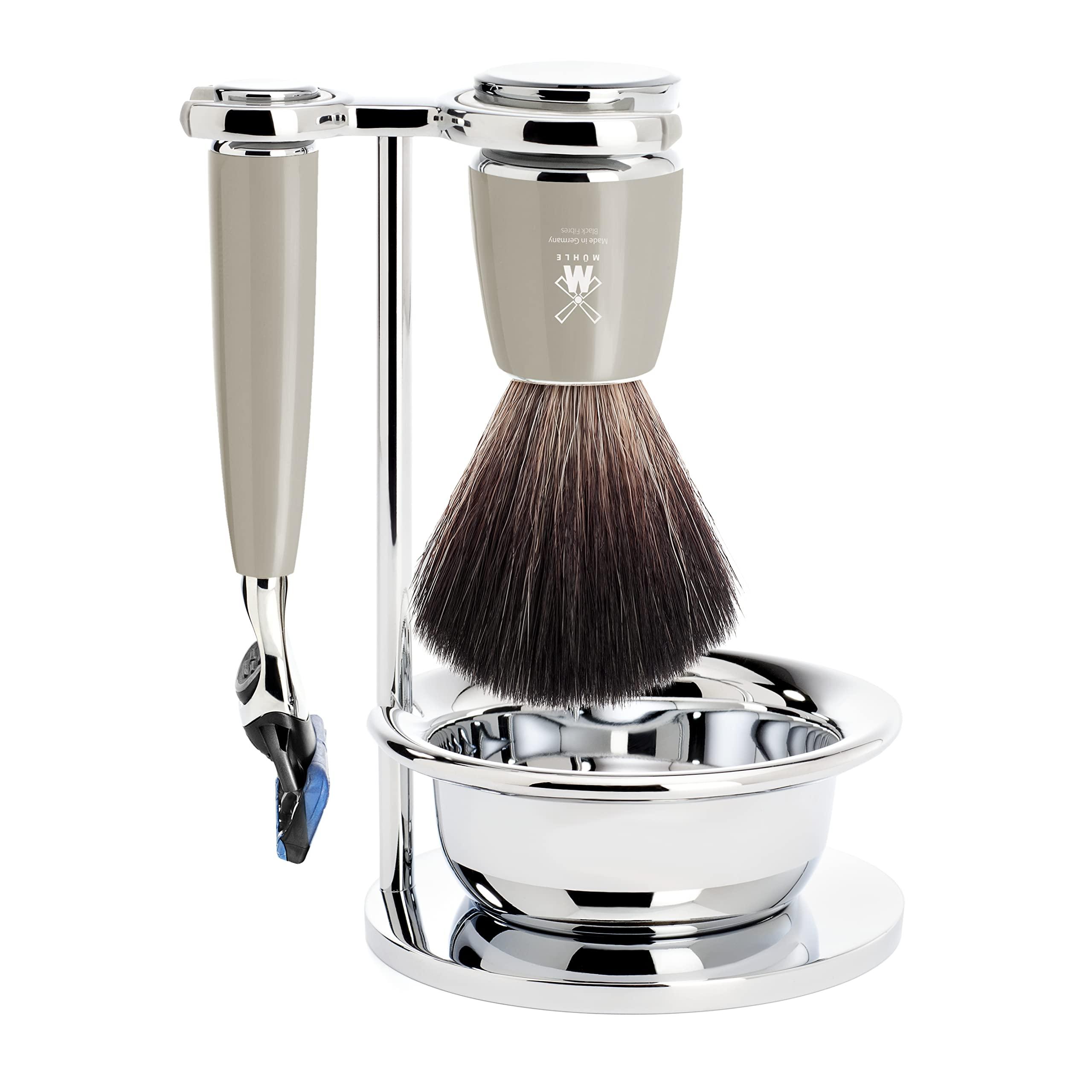 - COMPLETE SET: This eye-catching, timeless shaving kit includes both a chrome stand for displaying the brush and razor along with a chrome bowl for shave cream or soap. Makes a fantastic starter kit and gift set for anyone.