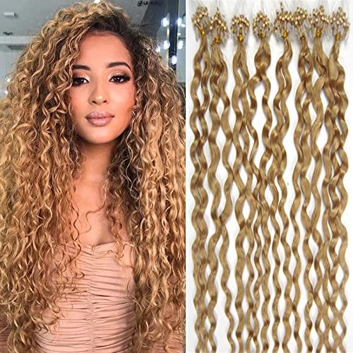 Yotty Micro Ring Link Hair Extensions Invisible Micro Ring Beads Loop Tip Remy Human Hair Curly Golden Blonde 20inch 100s