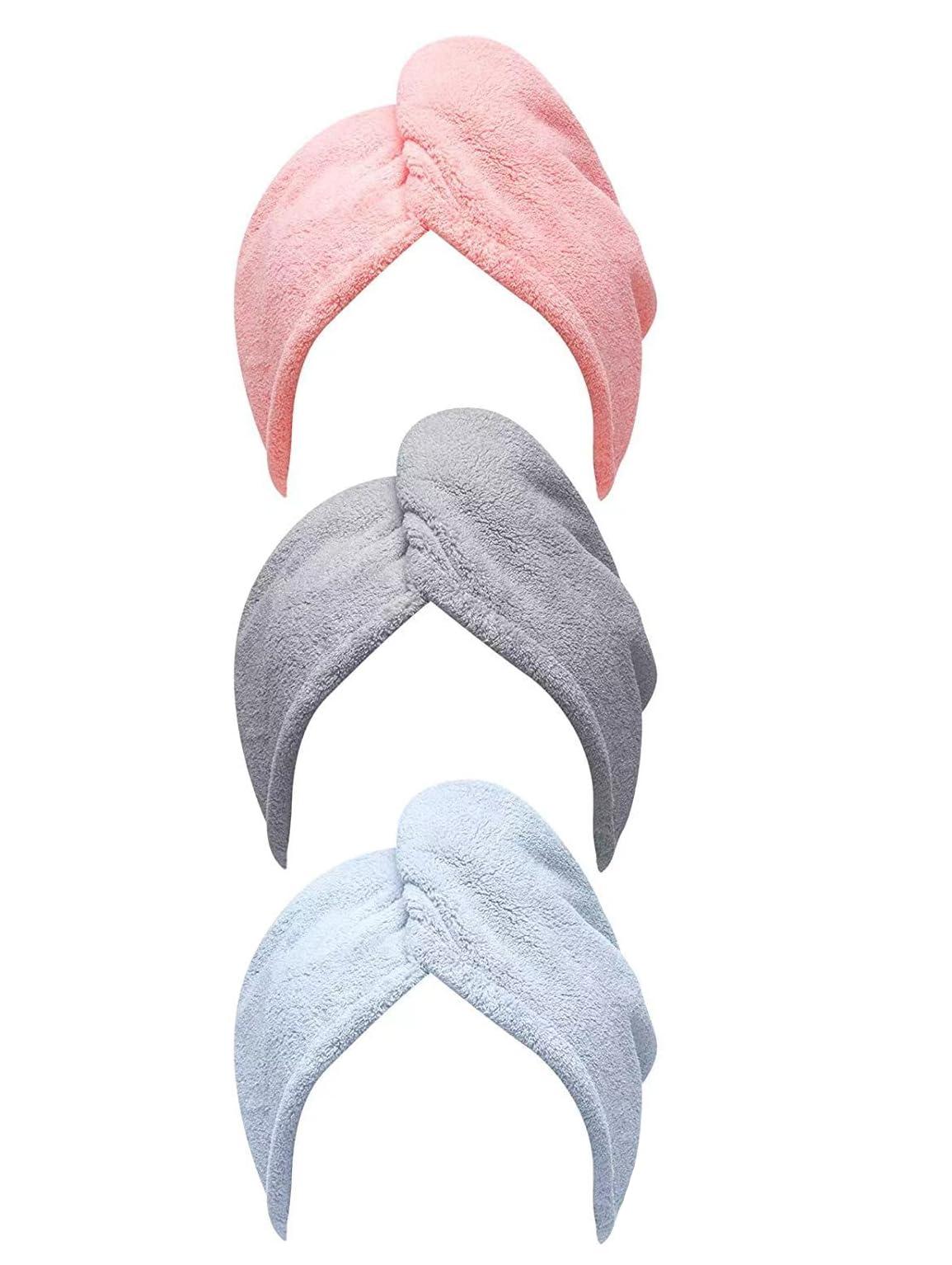 - Versatile Pack: This set includes 3 soft and absorbent microfiber hair towels in pink, grey, and blue shades to suit your style preferences.