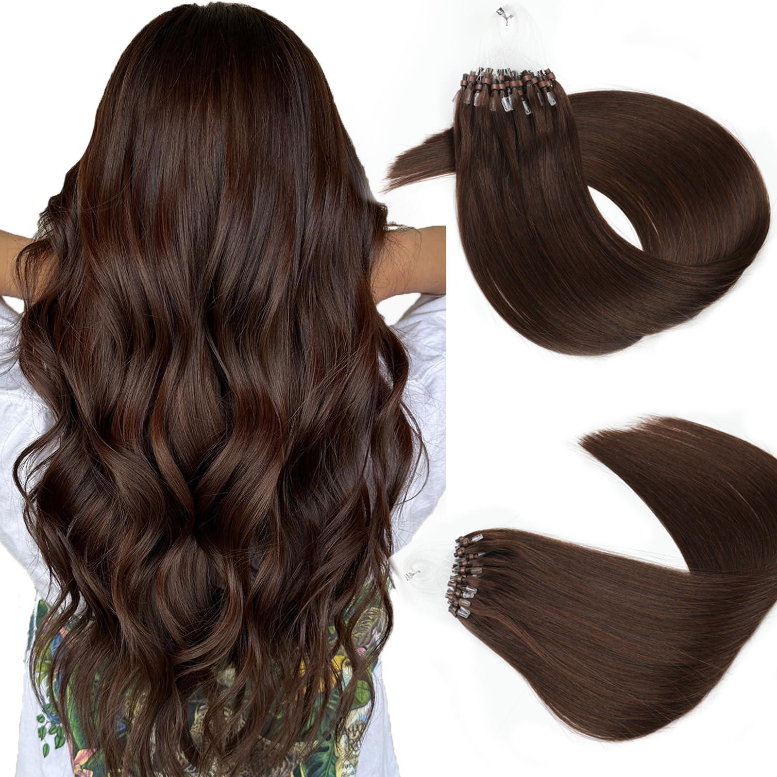Microlink Hair Extensions Human Hair 50g 20inch(#4) Chocolate Brown Micro Link Hair Extensions Human Hair Microbead Hair Extensions Microloop Hair Extensions Human Hair For Women